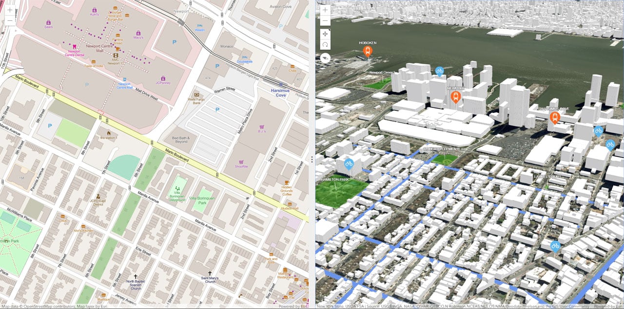 Compare is a new app that supports side-by-side or stacked comparison of two maps or scenes. You can configure the app to compare two scenes, two maps, or one of each. The two views can be linked or unlinked depending on whether you want to show the same location or not.