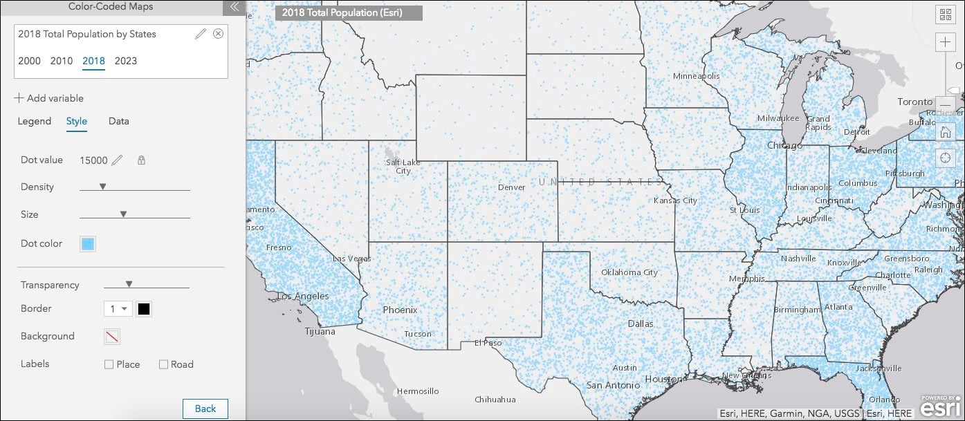The latest update of ArcGIS Business Analyst Web App allows you to create dot density maps, use infographic templates across organizations and countries, edit site attributes and validation, categorize and browse your own data more easily, and much more. For more information, see What’s new in ArcGIS Business Analyst.