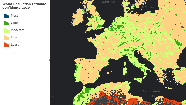 - A confidence score (1 = most, to 5 = least) surface is now available. This score accounts for the reliability, age, and method of the population estimates, the impact of raster resampling during the modeling process, and the ratio of the population to the size of reporting units. See World Population Estimate Confidence 2016