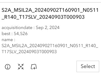 - Select an image after Hurricane Helene from Sentinel-2 Level-2A in ArcGIS Living Atlas.