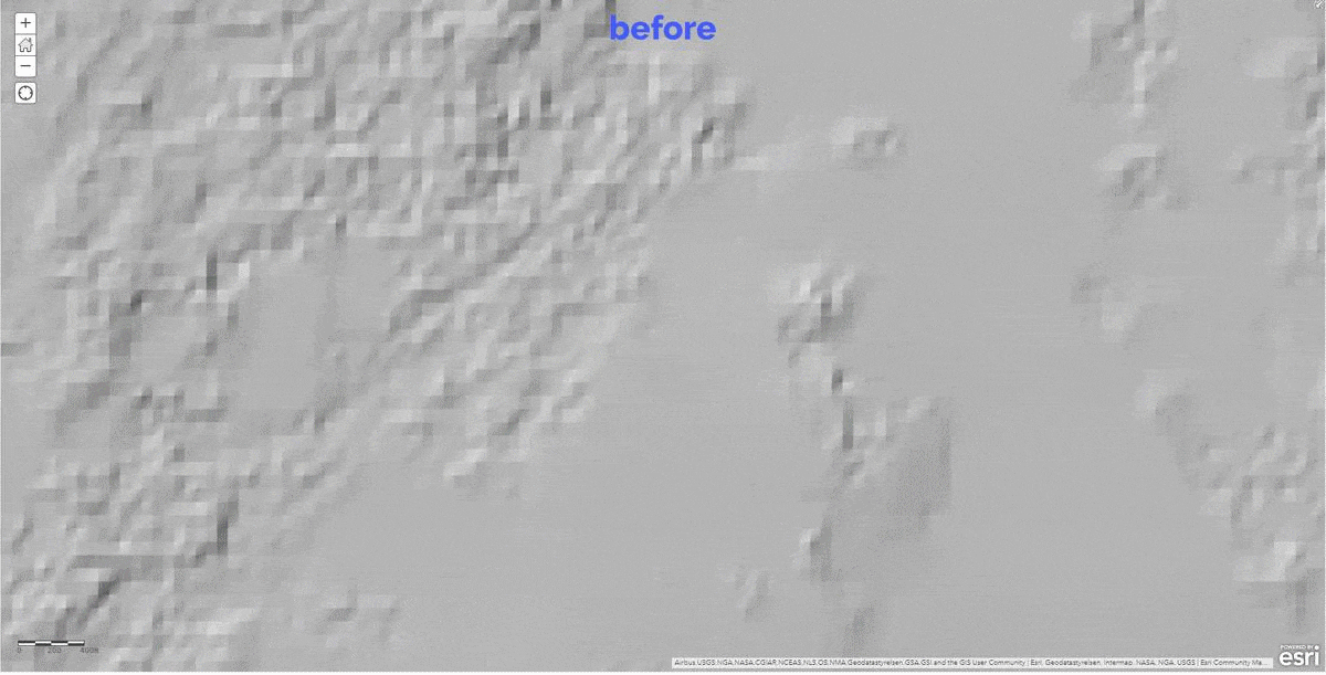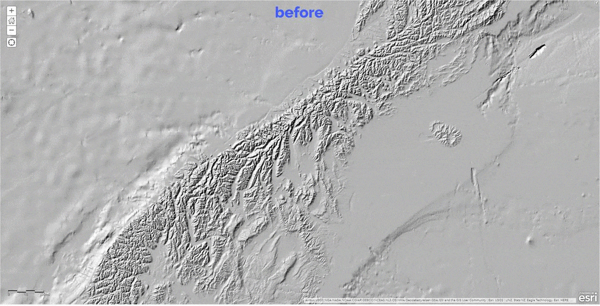 These data updates will be rolled out to the world elevation tiled services – Elevation 3D (Terrain3D and TopoBathy3D) and Hillshade (World Hillshade and World Hillshade (Dark) ) by the next quarter.