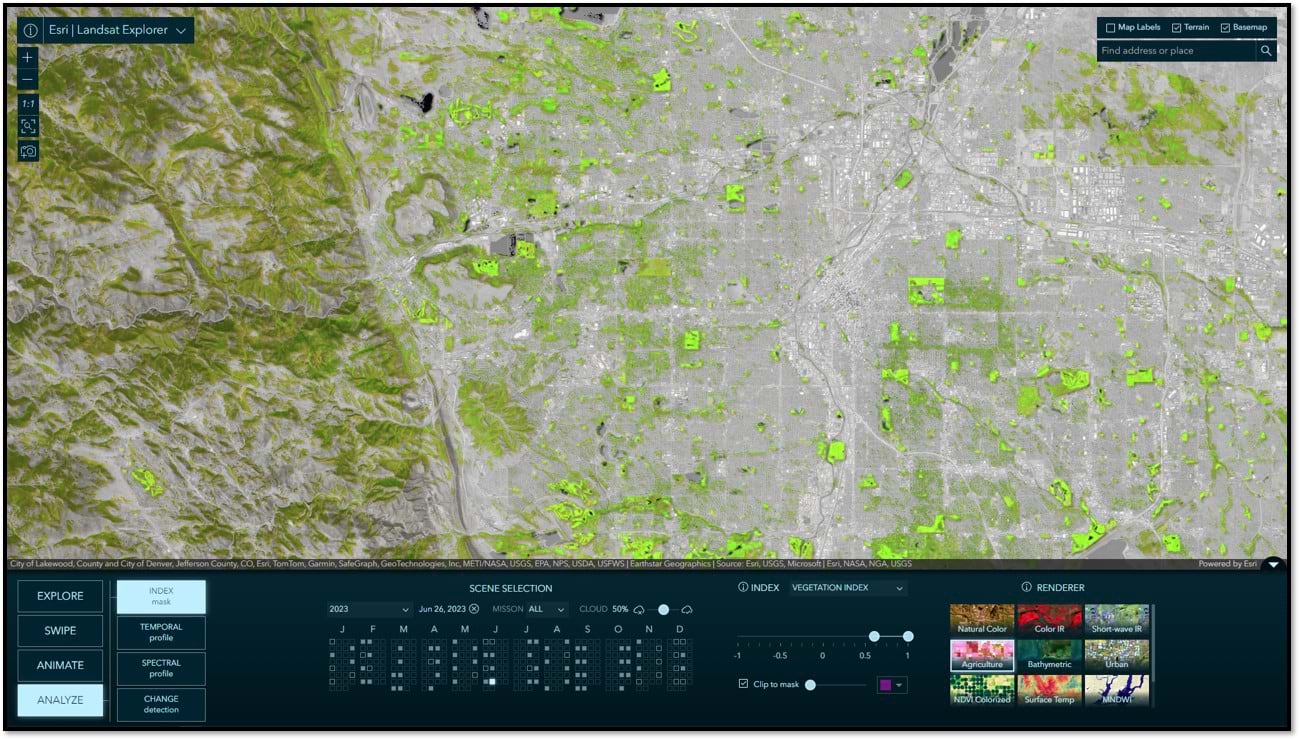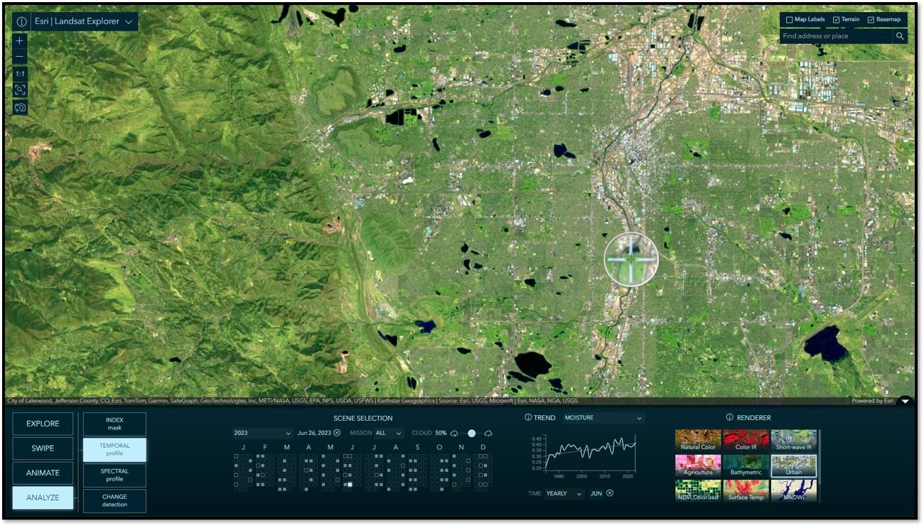 Landsat Explorer is our second in what is to become a suite of imagery explorer apps. In 2023, we released the Sentinel-2 Land Cover Explorer. Later in 2024, we are considering a variety of additional imagery explorers, so stay tuned.