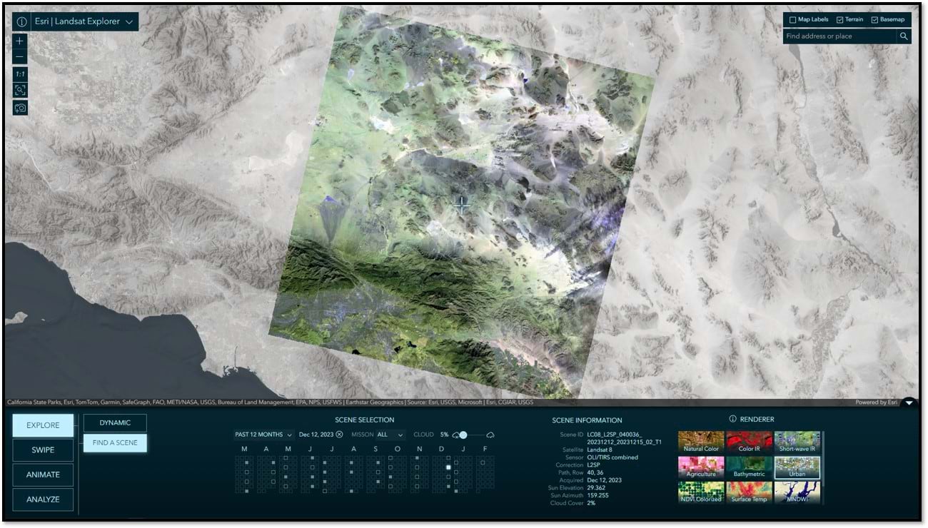 Powered by the Landsat Level-2 multispectral imagery from ArcGIS Living Atlas, and the ArcGIS Maps SDK for JavaScript, Landsat Explorer provides unprecedented ease of use and accessibility to the full archive of Landsat science products. Whether educating the next generation of managers, scientists, influencers, and decision makers, or helping today’s professionals unlock useful insights, the app has something for everyone, furthering the democratization of Landsat imagery and enabling innovation.