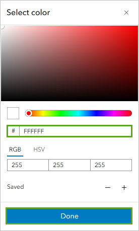 - In the Symbol style window that appears, click the Outline color tab and in the color picker, choose the white color (#FFFFFF). Click Done.