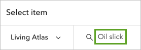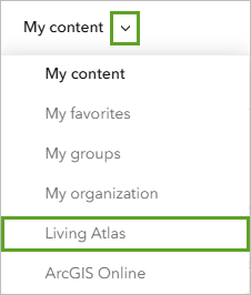 - In the Select item window, next to My content, click the drop-down arrow and choose Living Atlas.