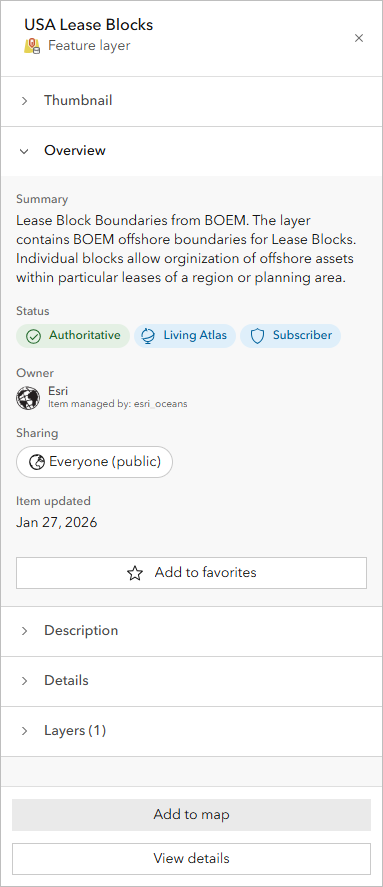 First, you’ll add the USA Outer Continental Shelf Lease Blocks layer from ArcGIS Living Atlas to your map.