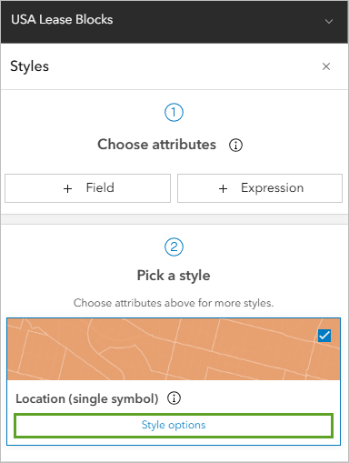 - In the Styles pane, under Pick a style, for Location (single symbol), click Style options.