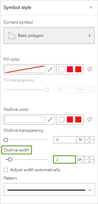 - In the Symbol style window, for Outline width, type 2.