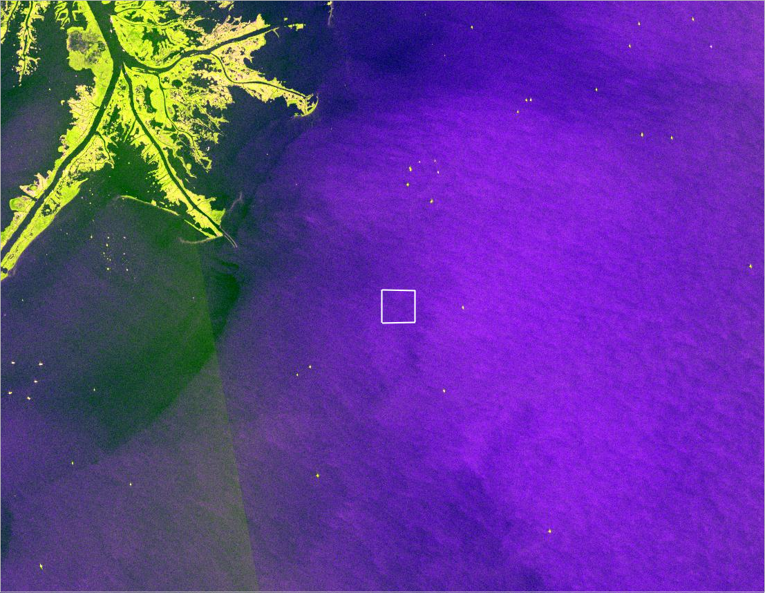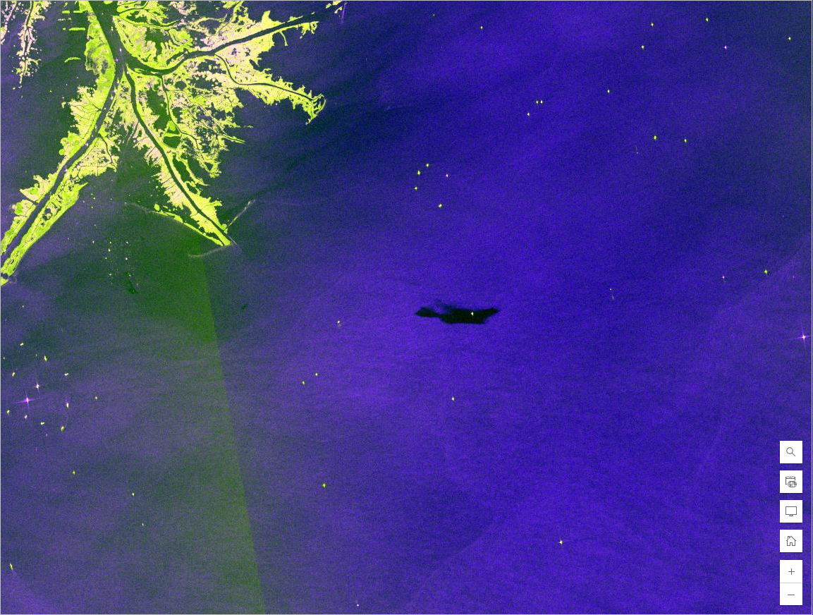 The Taylor Energy oil spill began in 2004 and continued until its containment in 2019. The Sentinel-1 RTC dynamic imagery layer provides images of the Taylor site from 2015 onwards. For the purpose of this blog tutorial, you want to find an image that was captured in April 2018.