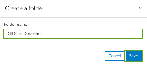 - For Folder Name, type “Oil Slick Detection” and click Save.
