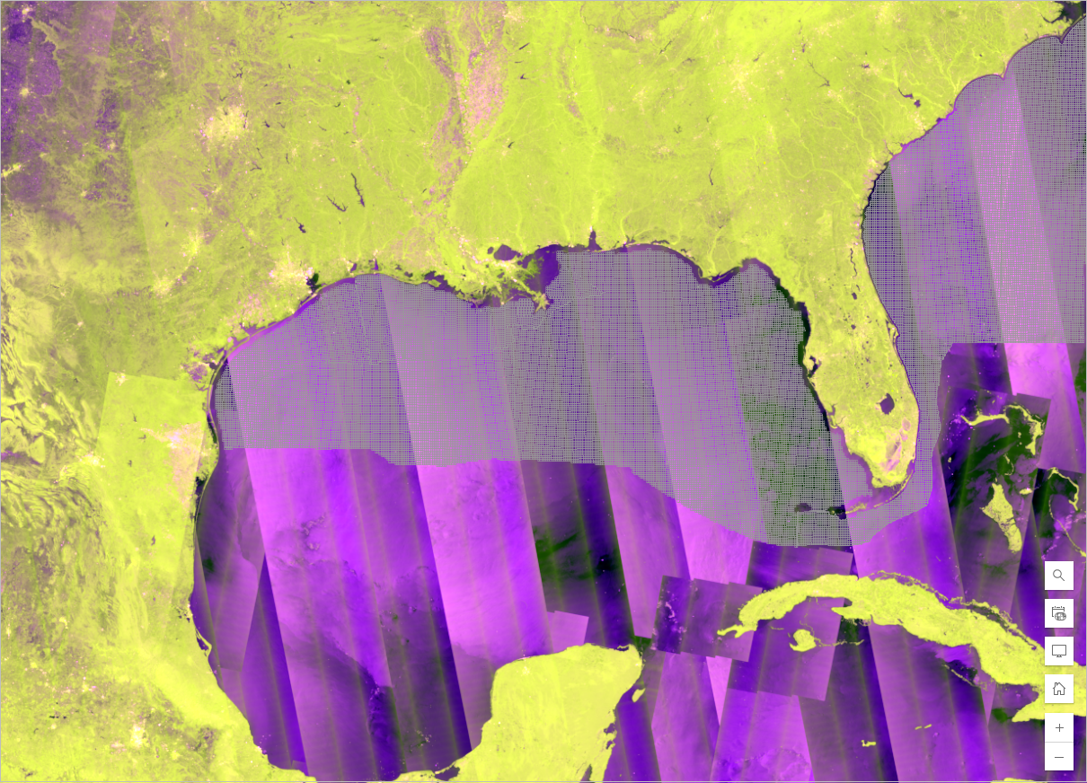 The map you created shows the Sentinel-1 RTC data for the entire world. You need to focus the map to your area of interest (AOI), which is the Taylor site. You’ll use a feature layer outlining the USA Outer Continental Shelf Lease Blocks to do that. These Lease Blocks are legal subdivisions of United States submerged lands, subsoil, and seabed. The Taylor site is in the Mississippi Canyon lease block 20 (MC20).