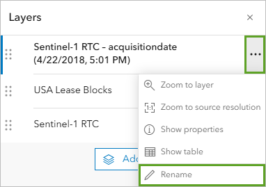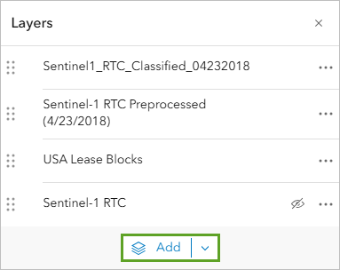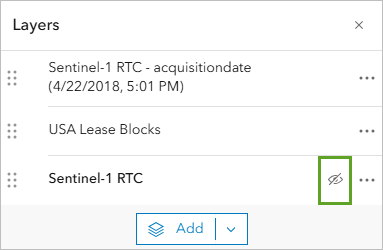 - Similarly, remove the Sentinel-1 RTC Preprocessed (4/23/2018), USA Lease Blocks, and Sentinel-1 RTC layers.