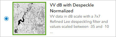 You’ll look for the Sentinel-1 RTC dynamic imagery layer in ArcGIS Living Atlas.