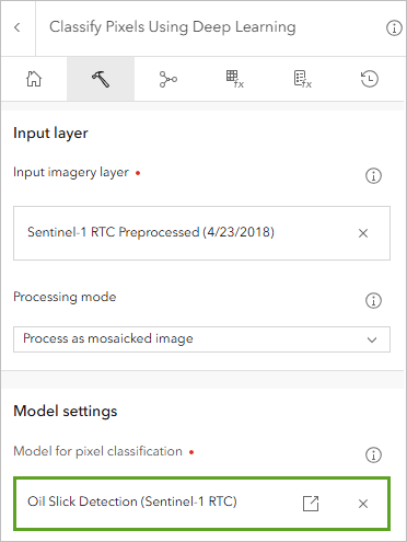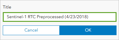 - For Input imagery layer, ensure that Sentinel-1 RTC Preprocessed (4/23/2018) is selected.