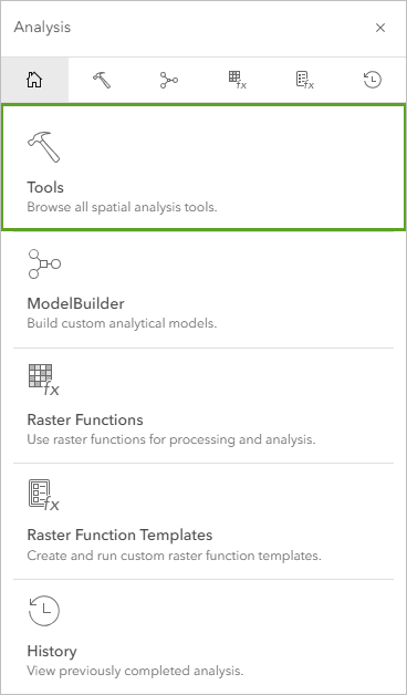 Tip: To access the Raster Analysis tools, you need to have the ArcGIS Image for ArcGIS Online capability enabled. If you don’t see the Raster Analysis option, confirm with your ArcGIS Online organization administrator whether you have sufficient permissions.
