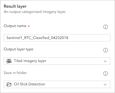 - For Save in folder, confirm that your Oil Slick Detection folder is selected.