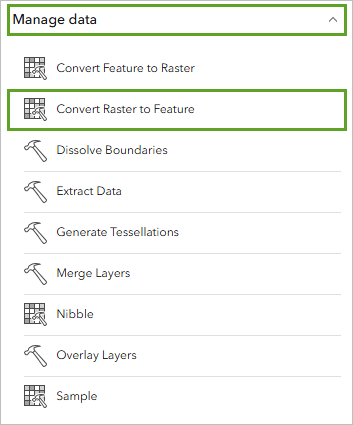 - In the Tools pane, expand Manage data and click Convert Raster to Feature.