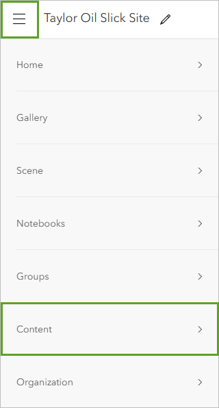 - In the top bar, click menu button and choose Content.