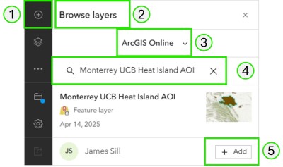 - Enter “Monterrey GHS-UCDB Heat Island AOI” into the search dialogue and click search.