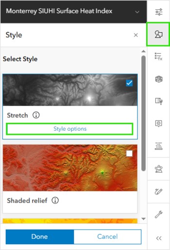 **Living Atlas imagery layers optimized for analysis provide scalability for larger and more diverse workflows. This capability must be enabled to avoid size constraints and allow the urban heat analysis to scale appropriately. See ArcGIS Living Atlas ready-to-use imagery layers for analysis for more information, including how to enable imagery layers optimized for analysis.