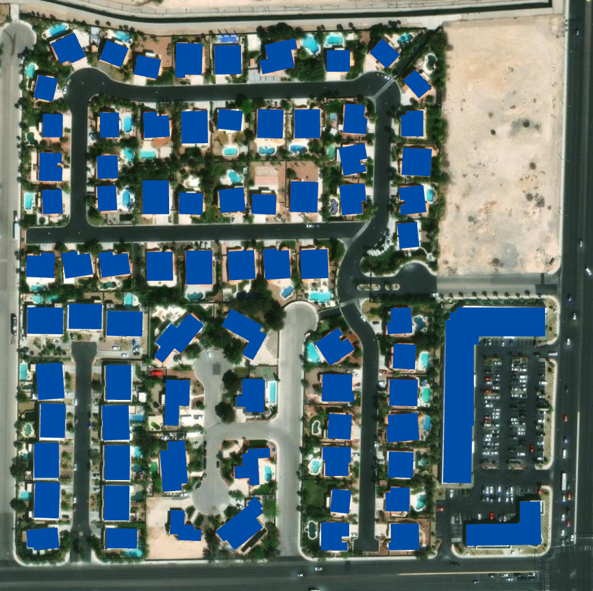 At this point, your detected building footprints should be regularized and uniform.