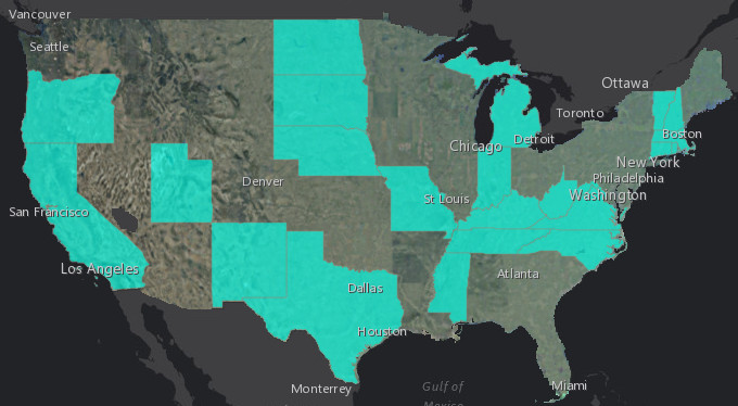 Did you know that Esri hosts a set of image layers with recent 1m (or better) resolution, multispectral imagery for the continental United States? The Living Atlas includes a set of NAIP image layers hosted by Esri and these layers now include the NAIP 2016 1m and 60cm imagery. Over the last few months, we have been busy assembling, processing, and publishing this imagery to make it available to you. Last week, we released our final set of NAIP 2016 imagery and the image layers and maps now include the latest imagery for 24 states (shown below). You can discover and access these layers through the Living Atlas (in various apps) as well as through the ArcGIS Online NAIP Imagery group.