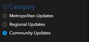 There are three sources of high-resolution imagery in the World Imagery basemap. Click on a Category to select the imagery source you want to explore updates for.