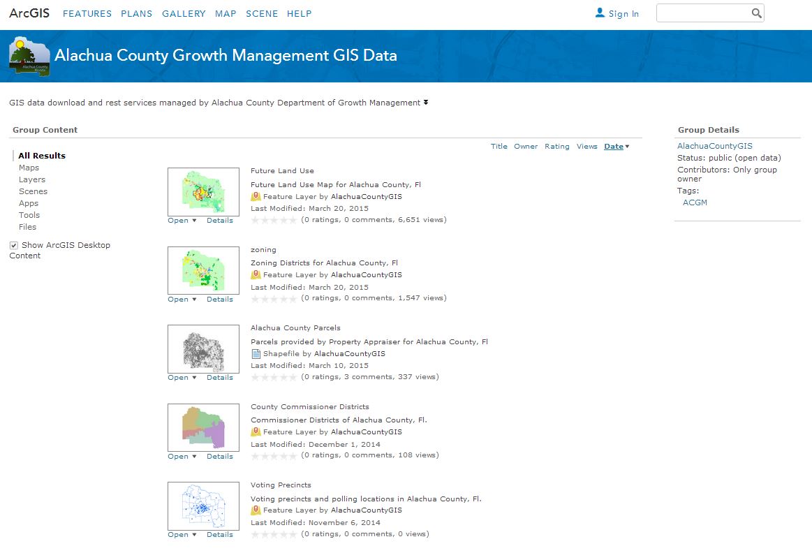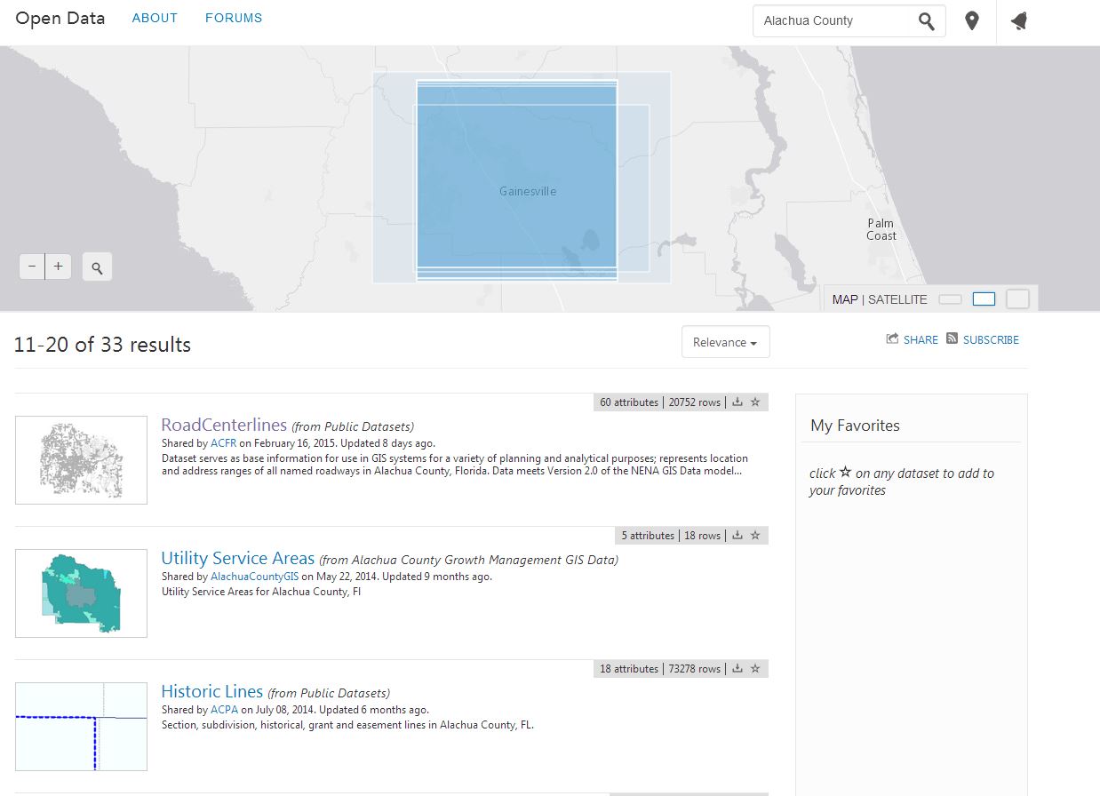 Alachua County is also contributing content to ArcGIS Open Data, where anyone can search across the entire community of shared open data.