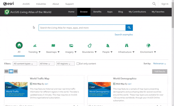 - Browse and add to a new or existing map in ArcGIS Online
