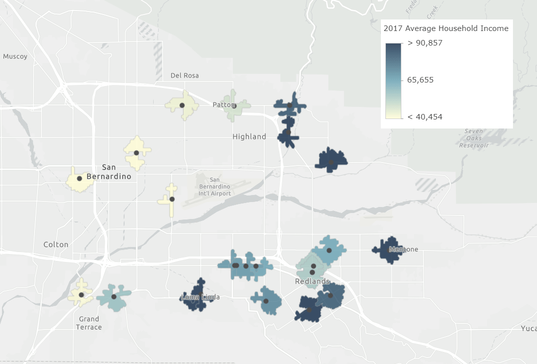Scenario: You have point data for hospitals in your area. You need to know how many low-income households are within a 5-minute drive for each of these hospitals.