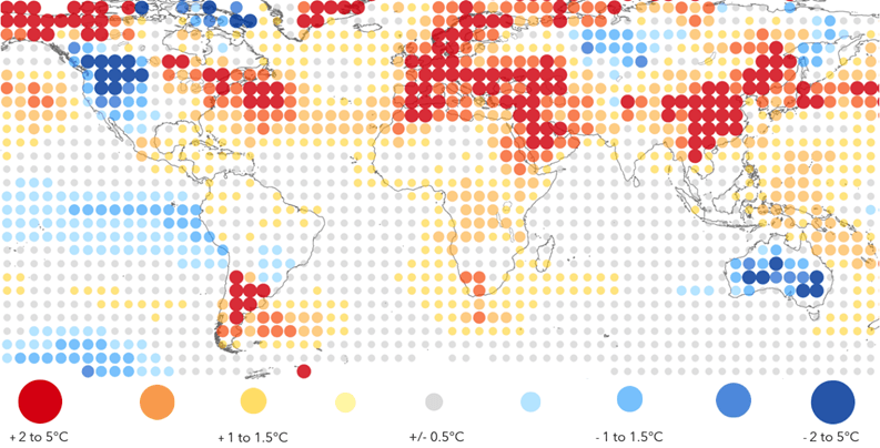 Most extreme levels of warming have been concentrated in the Northern mid and high latitudes – and these patterns are expected to continue.