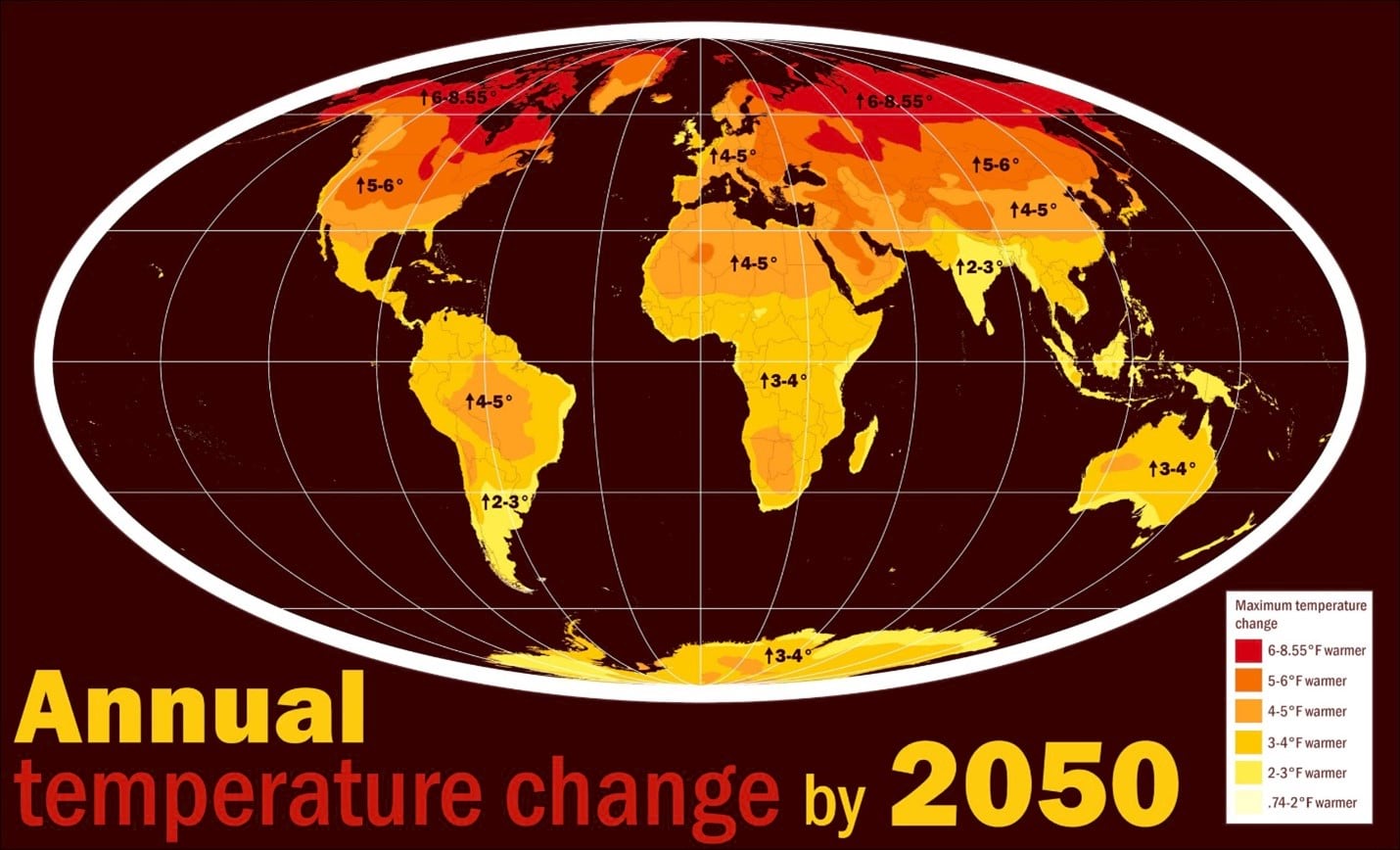 That means for us in the United States, we will likely see warming far beyond the 1.5°C Paris goal. With unchecked emissions, that number is more like 3°C. That’s about 5.5°F! What we’re getting at here is that, unless you’re a diplomat or climate scientist, ignore the global averages. The numbers you need to watch are those for your immediate environment. If you live anywhere in the Northern Hemisphere, the warming you’ll experience is probably worse than the global average.