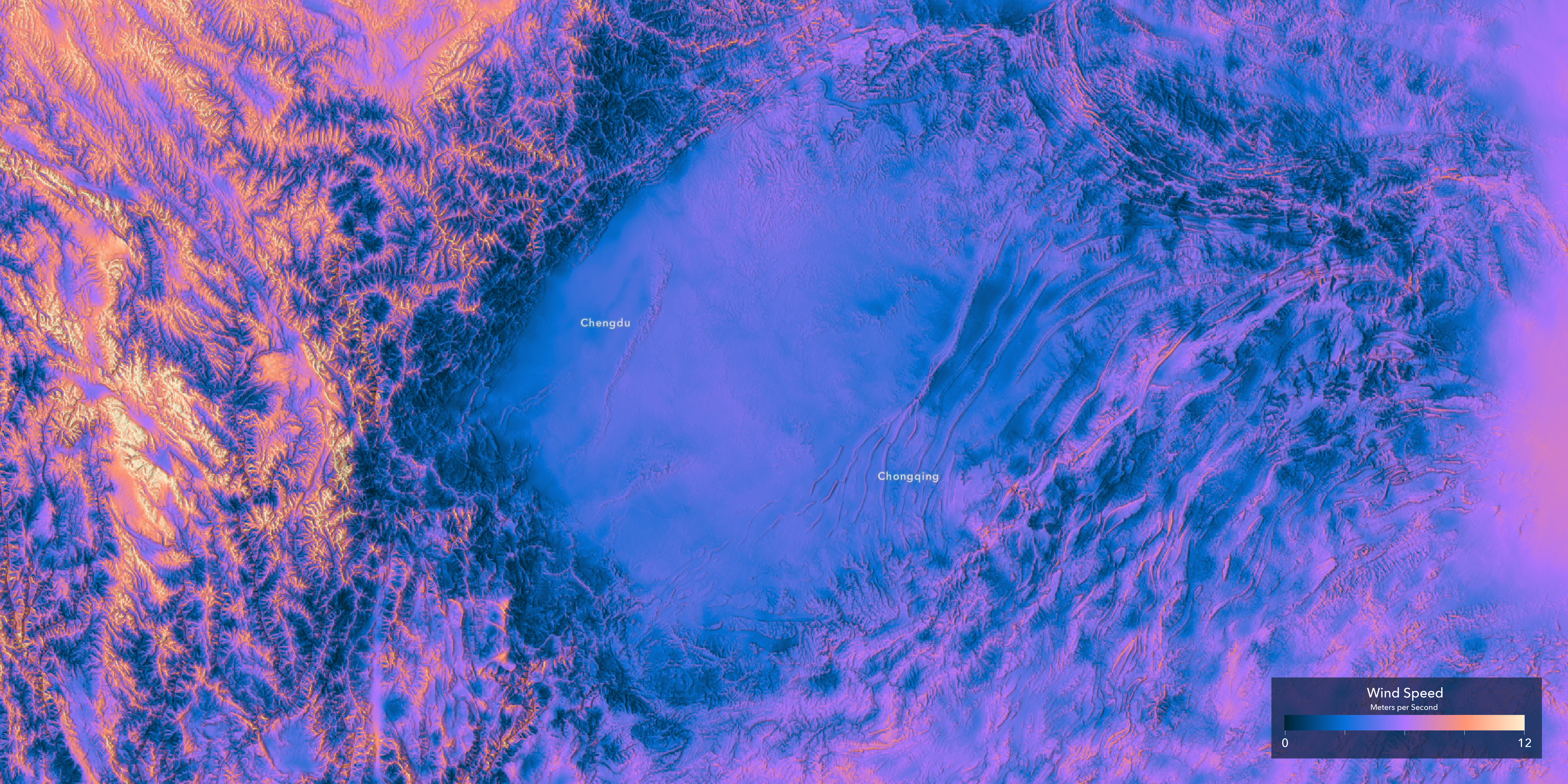 Wind Speed 100 meters around Chengdu and Chongquing, China.
