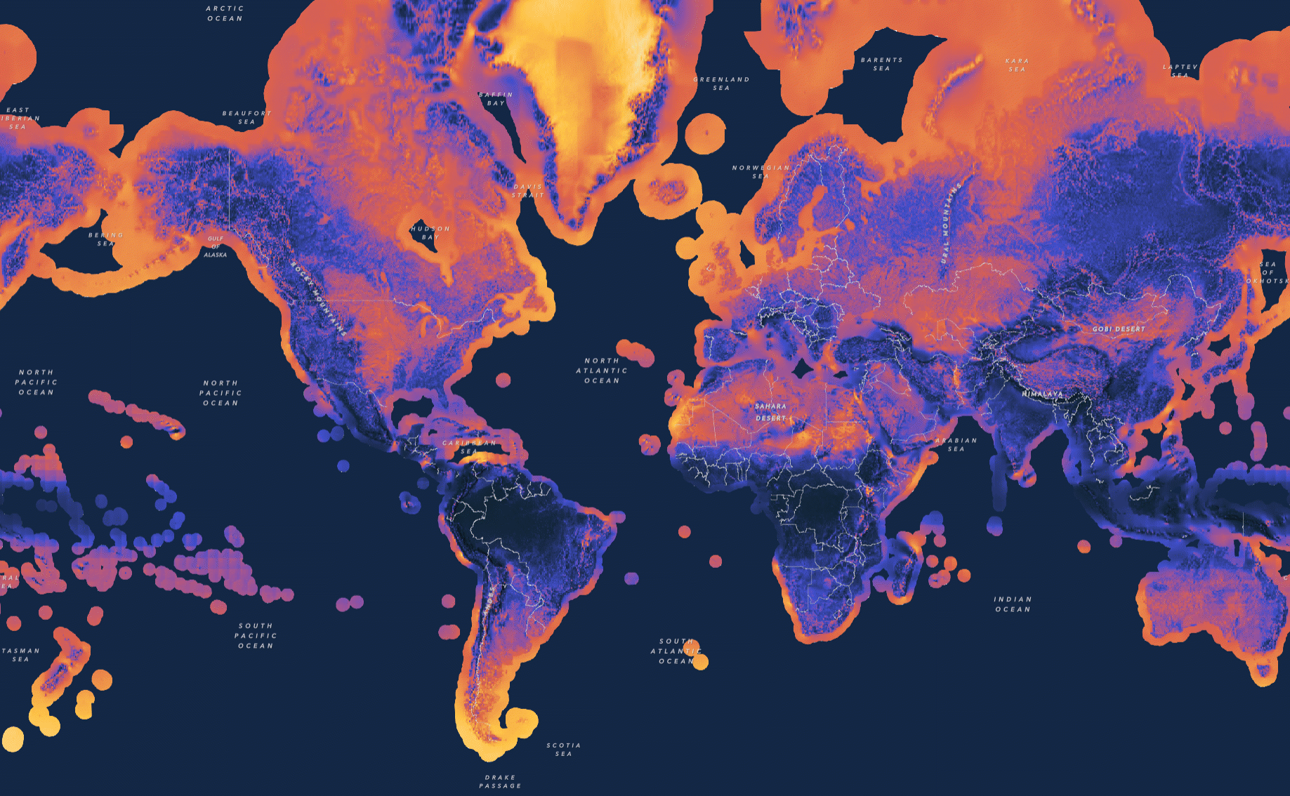 What was tricky was making sure the windy poles didn’t get over emphasized. Both Greenland in the north and the southernmost tip of South America naturally have more wind but don’t have a large network of transmission infrastructure. In addition, fewer people live there and there is less demand for wind energy. We didn’t want these locations to be overemphasized.