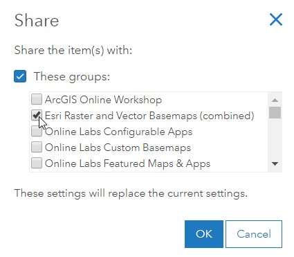 Step 5. Repeat steps 1 through 5 until finished sharing the basemaps you want into your group.