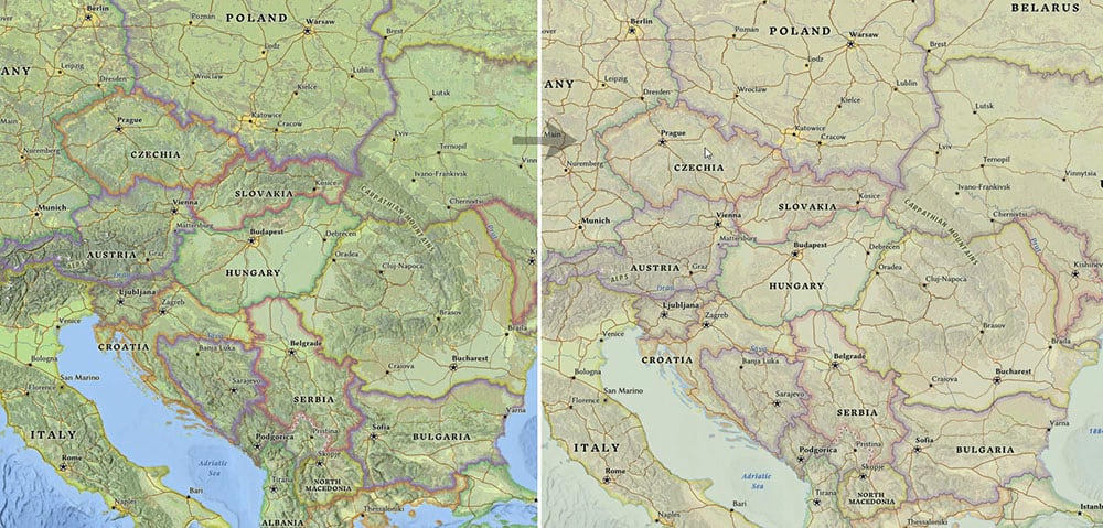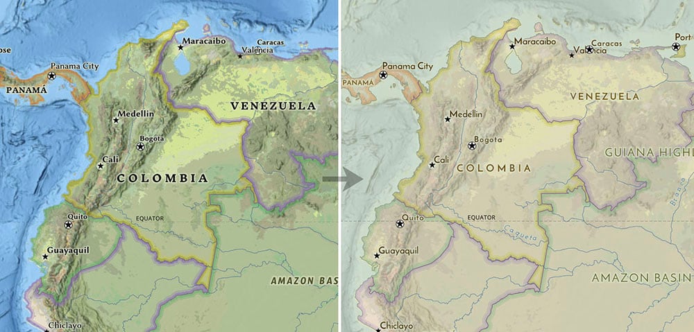 A bright and intricate map like the National Geographic Style does not lend itself to sweeping change, so don’t be over ambitious when you are planning out what you want to do. Let the new style evolve, and you might be surprised by the result.