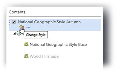 Now I can switch to the vector tile layer, which carries the rest of the information. I’ve saved a copy of the original and called it ‘National Geographic Style Autumn’. This IS customizable using the Vector Tile Style Editor (VTSE).