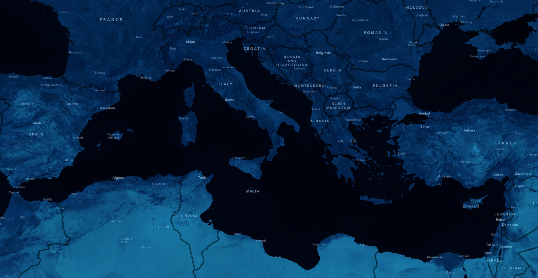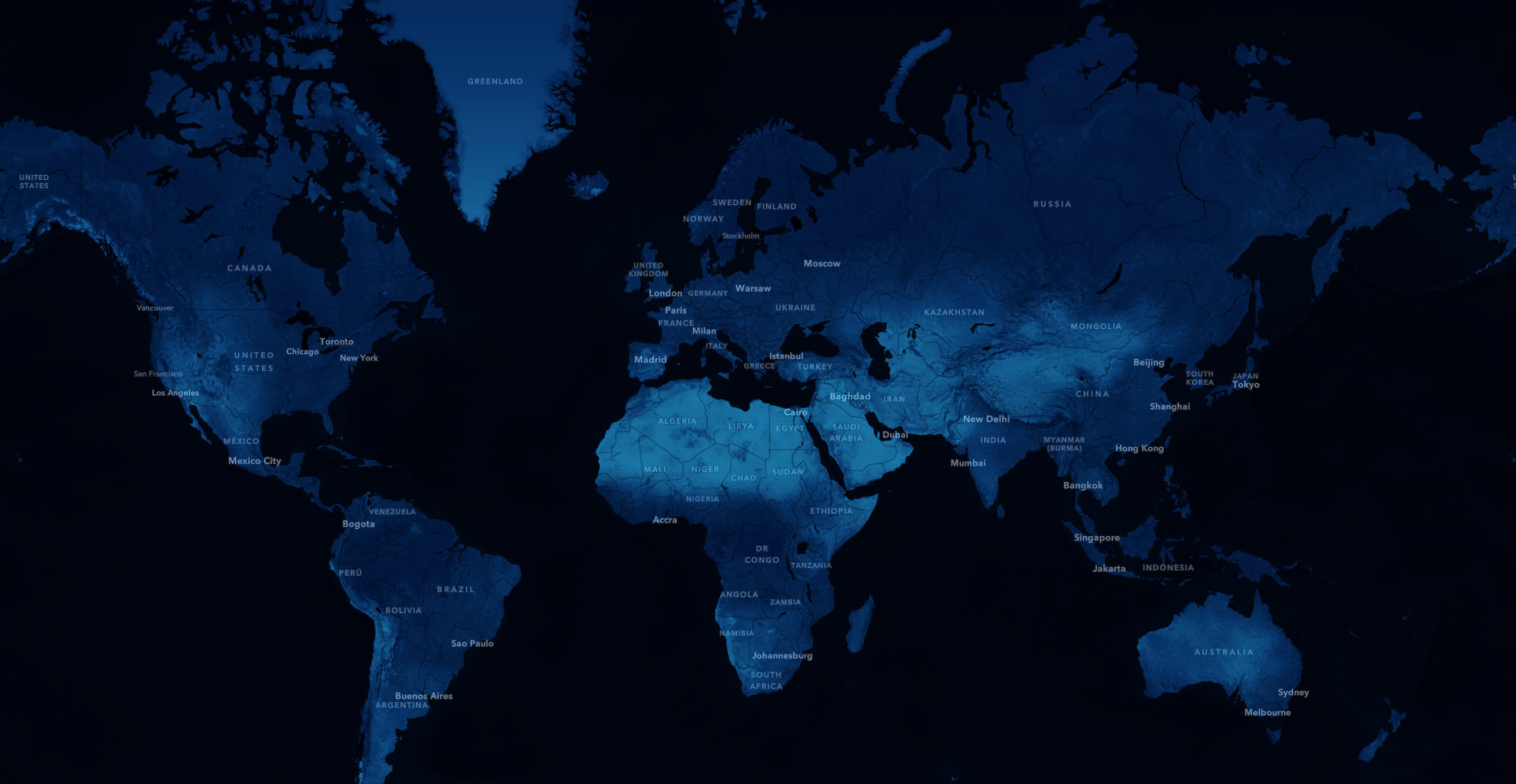 Deep Blue might be useful when the context and texture of imagery is desired, without the distraction of true full-color imagery. Like in this thematic app showing unemployment data. Do note, though, that this map works as designed only in the new ArcGIS Online Map Viewer and apps. Because it uses the map background to drive its tint, it is not supported in the classic map viewer and the background color (#003366) would have to be configured manually if the basemap is added to ArcGIS Pro.