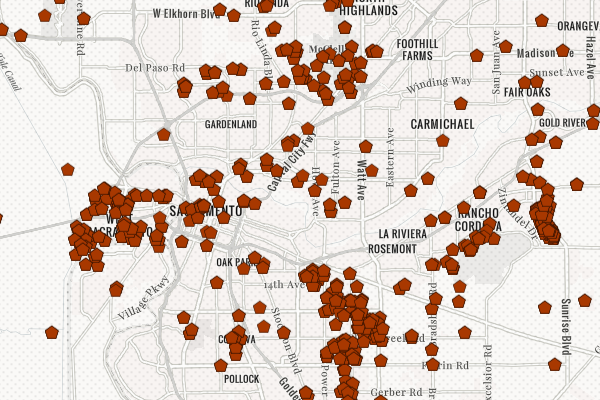 The Newspaper base map provides a visually interesting reference and a neutral pallet to help focus the map on the layer.