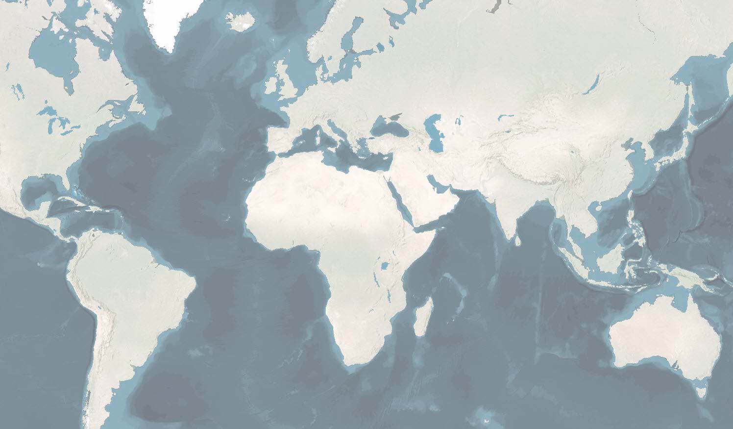 Bathymetry: This will be a surprise, but the bathymetry is actually gray in color with only 10% opacity. Remember I mentioned earlier about the Hillshade classes covering the Ocean and Bathymetry layers? The first three (Hillshade Shadow Base 1, Hillshade Highlight Light 1, and Hillshade Shadow Light 1) do faintly play a role here. This affects the visualization. However, by adding in the gray over it (which is tinting the bathymetry darker) it allows for more of a range of color. Look how the palette is without the imagery: