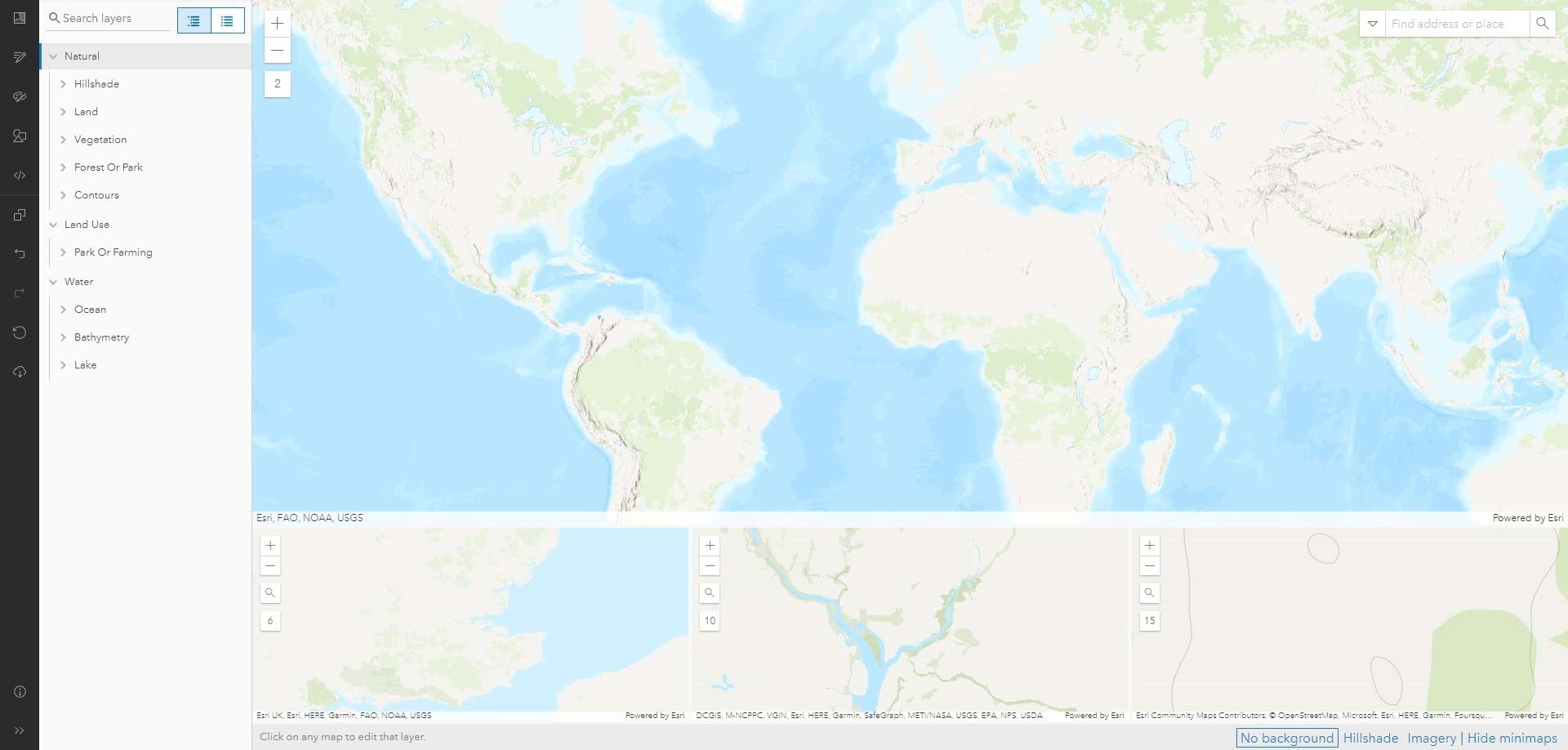 One of my favorite ways to style maps is with the Vector Tile Style Editor. What’s so wonderful about it is that you can take things that you like from one Esri basemap and join it with another. For example, check out this map which is the Esri World Imagery and World Topographic Basemap mixed together.