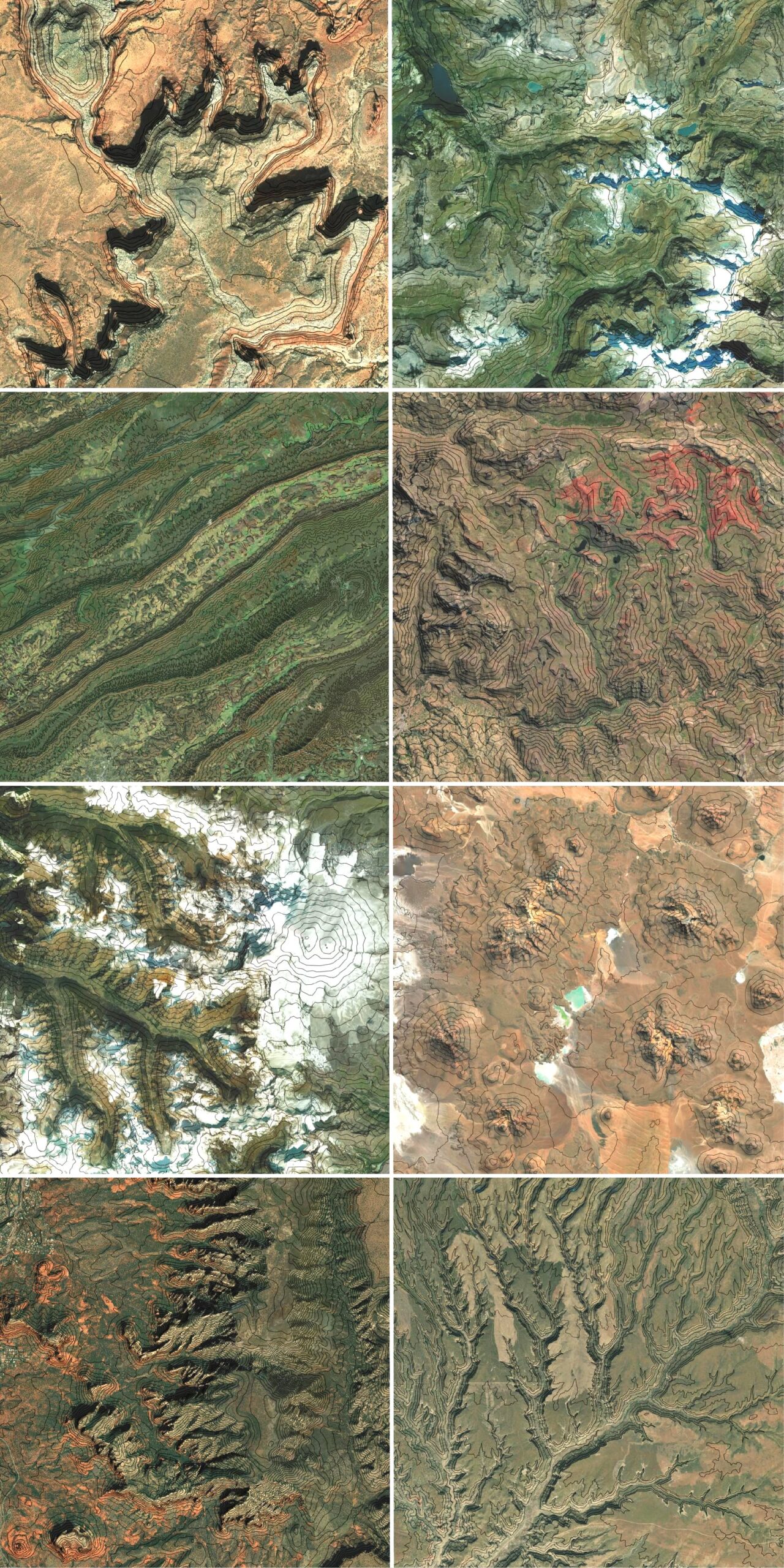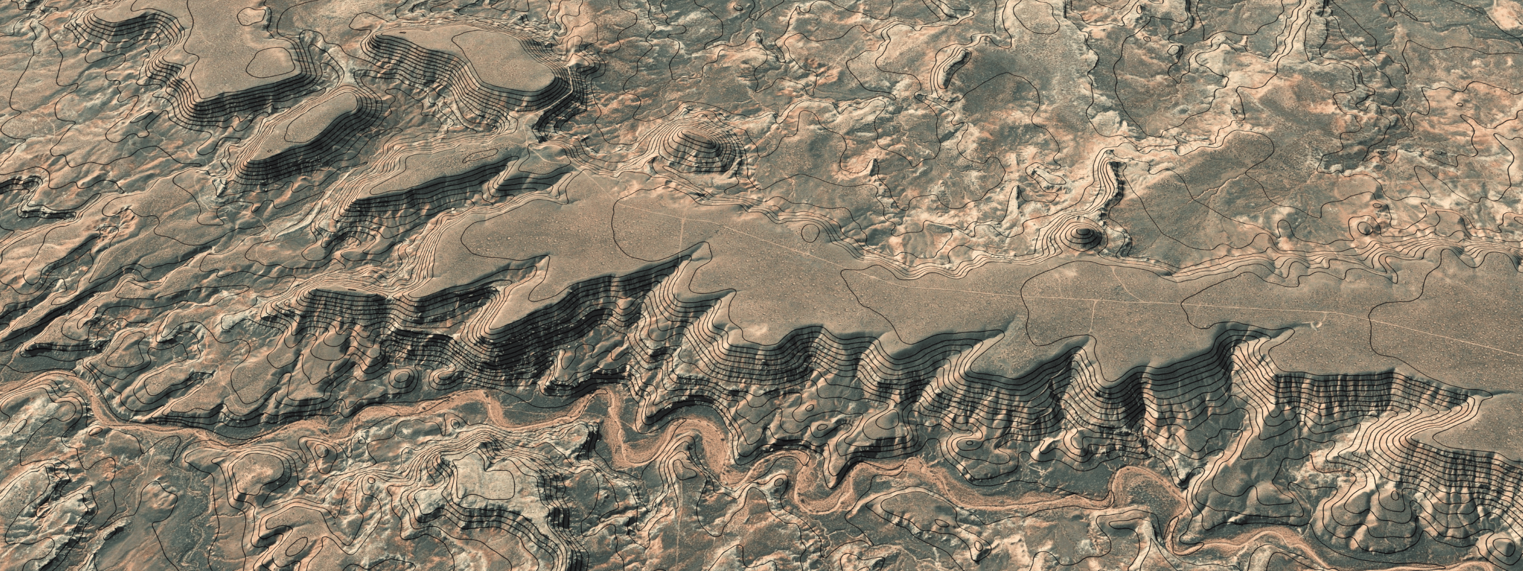 While working on the map above, I came across another visualization that I thought was really intriguing. Check out what happens when you combine World Contours and World Imagery, it looks like it was outlined with a pen by a terrain artist. These contours help accentuate the land very elegantly. They don’t come on until 1:72,224 and then wow! It’s like the depressions and cliffs come alive! I’m seeing things that I don’t normally see in the imagery and I really love that.
