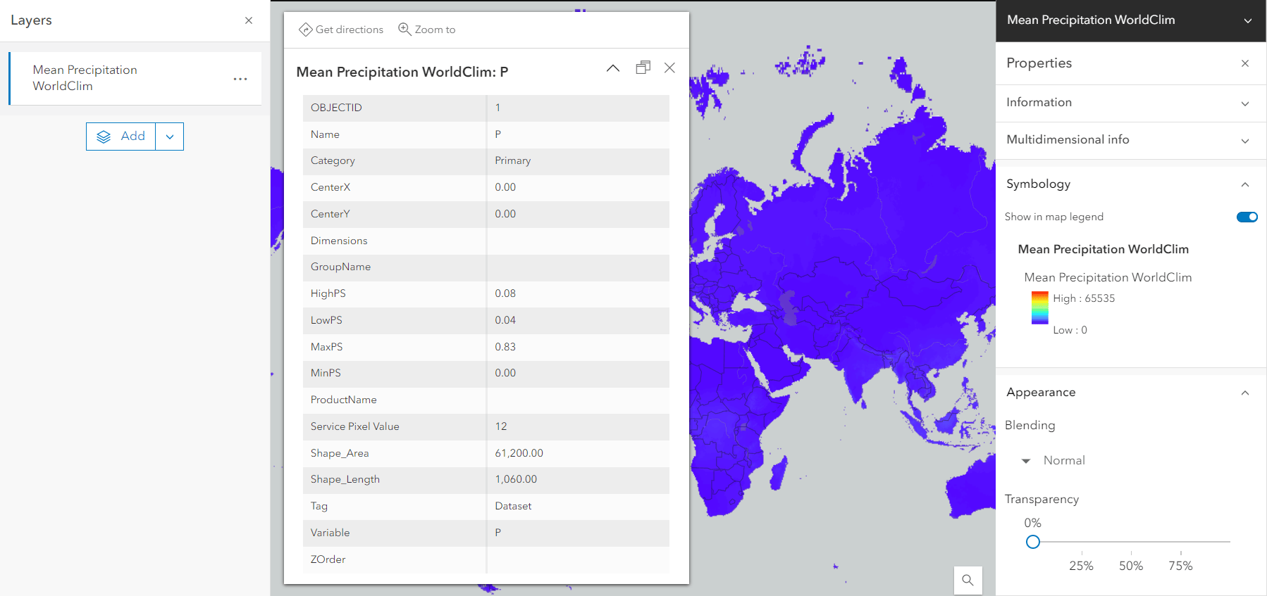 Here’s a great example: WorldClim Global Mean Precipitation layer in Living Atlas.