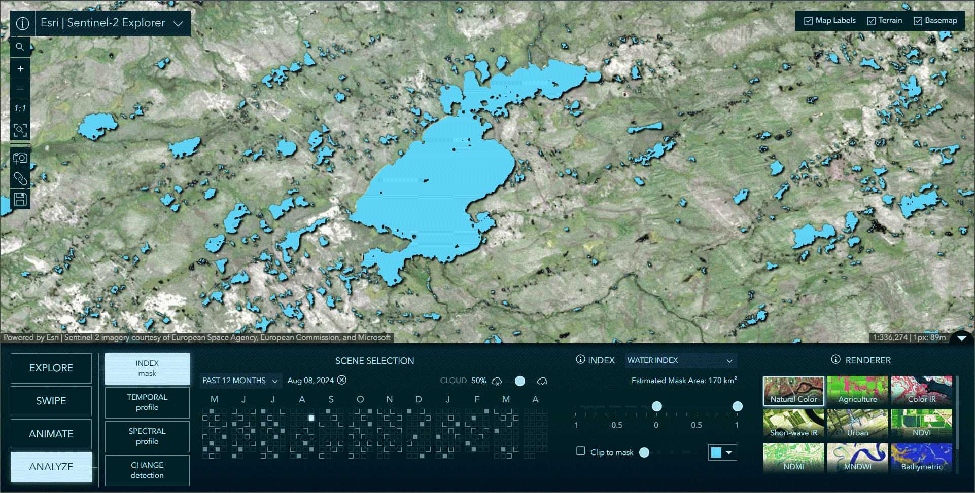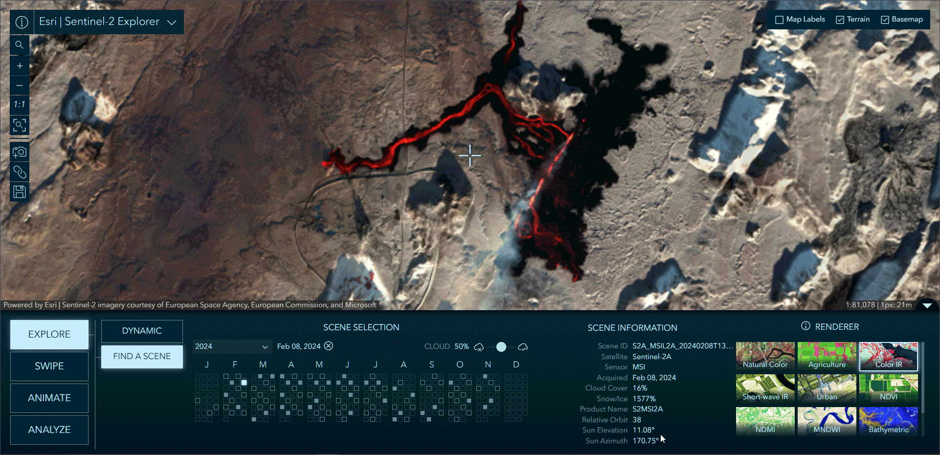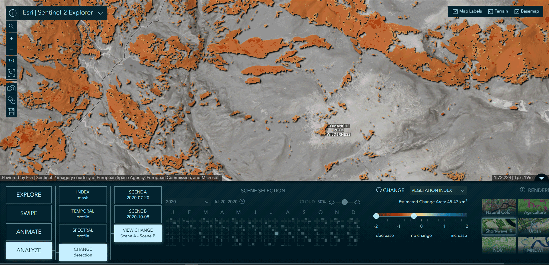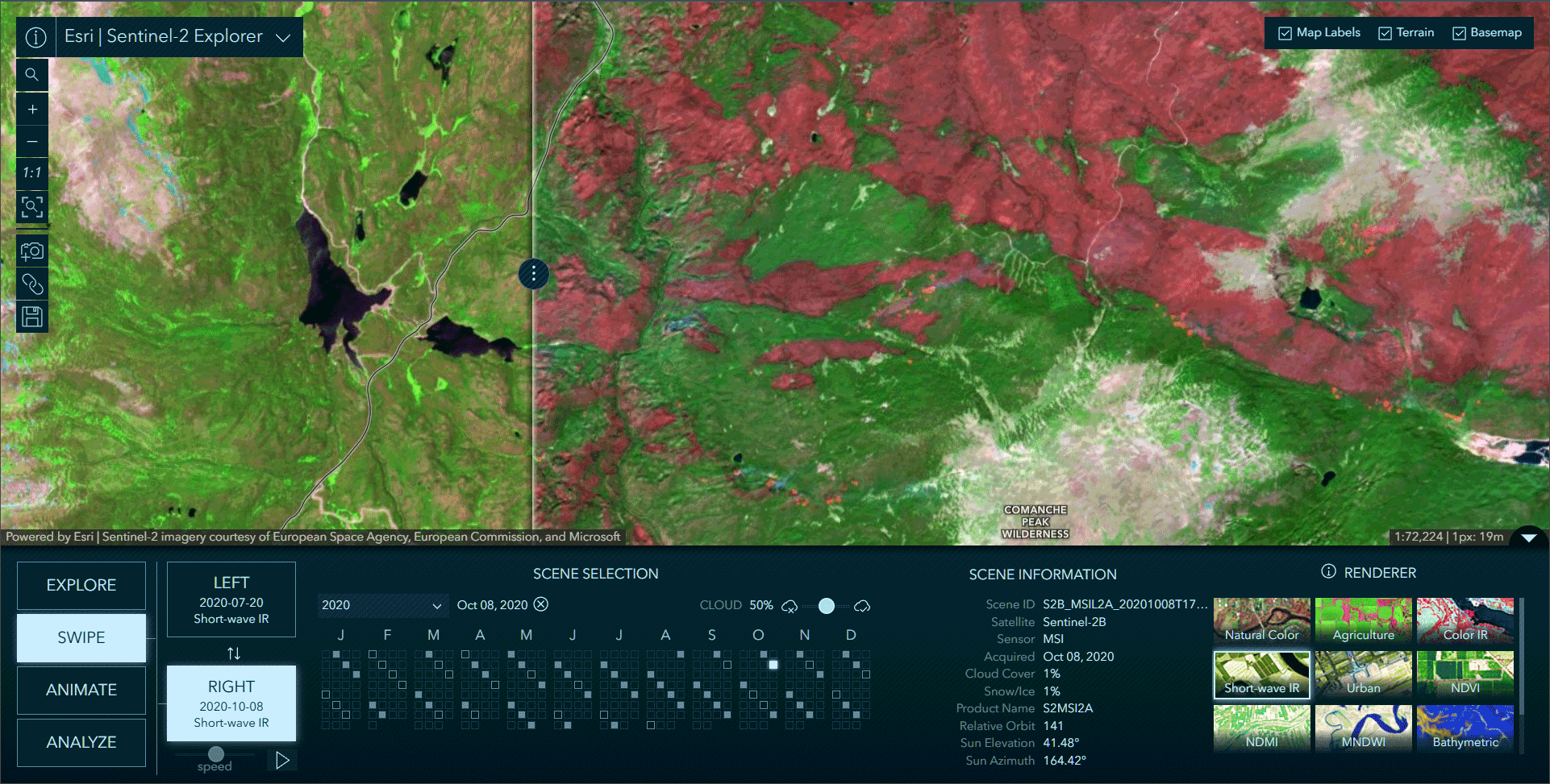 Sentinel-2 Explorer is an ArcGIS Living Atlas app that enables you to unlock and explore the wealth of information that Sentinel-2 provides.