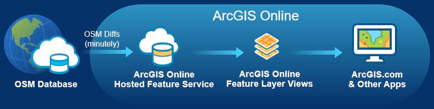 This year, Esri is introducing a new set of feature layers that provide access to OSM data. These feature layers will be hosted in ArcGIS Online and configured to scale. Because the data is published as feature layers, they will support visualization and analysis, including the planned ability to extract selected areas of the data (e.g. a city or neighborhood) for offline use or publishing in your own portal. As with OpenStreetMap itself, the data is published under an open (ODbL) license.