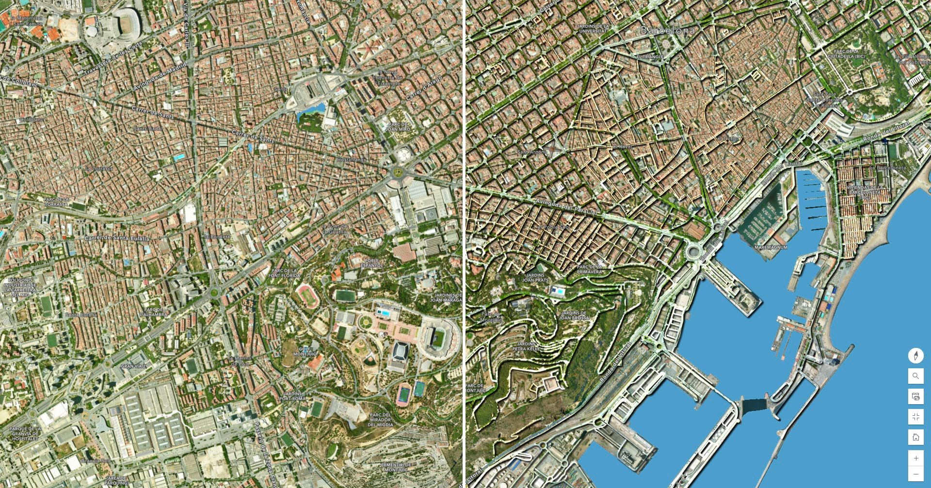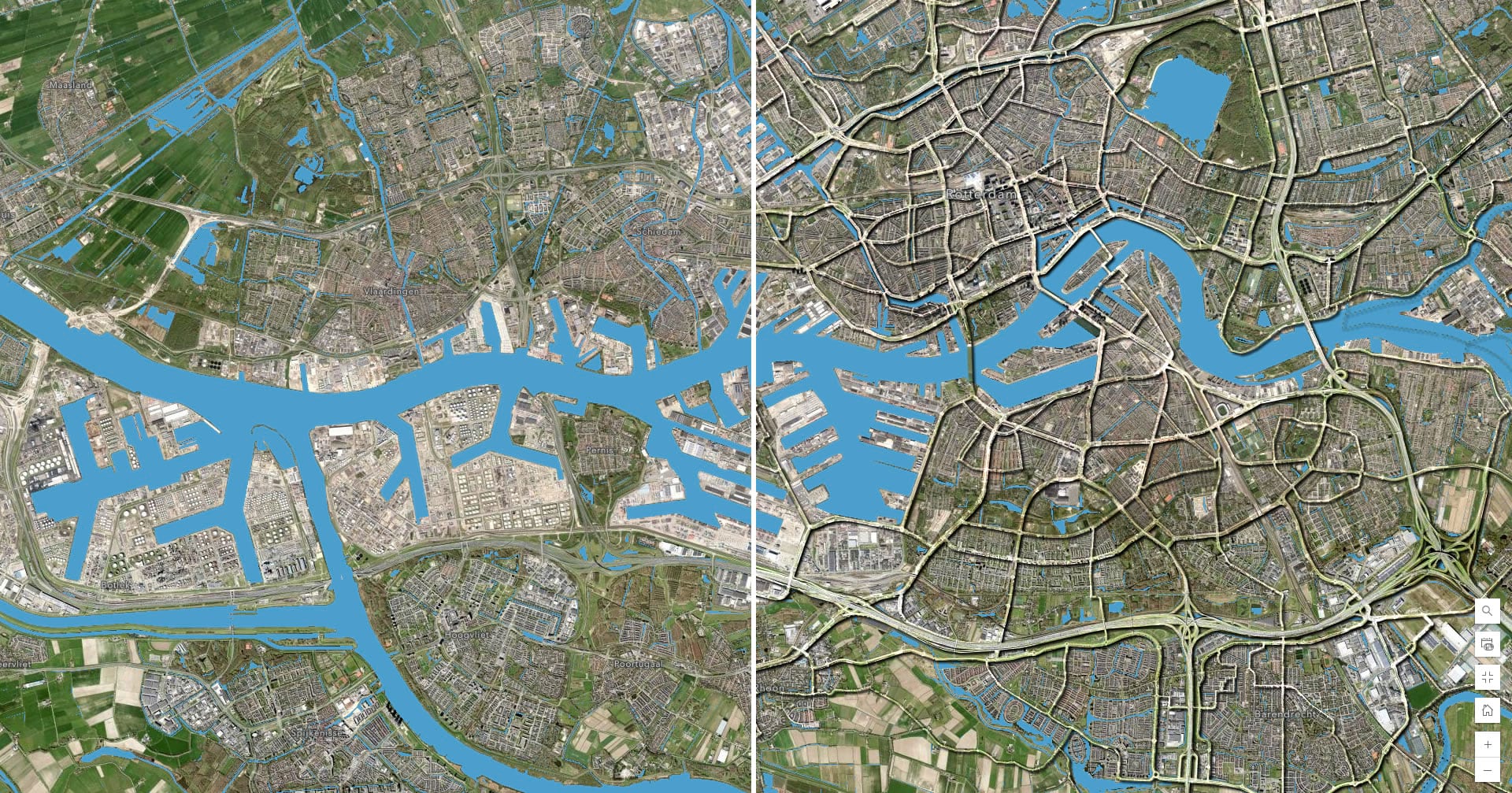 Yes, of course you can emboss elements of the built environment into an imagery basemap. But should you? Yeah, sure, why not! Here are some with/without examples of imagery basemaps and an embossed human footprint…