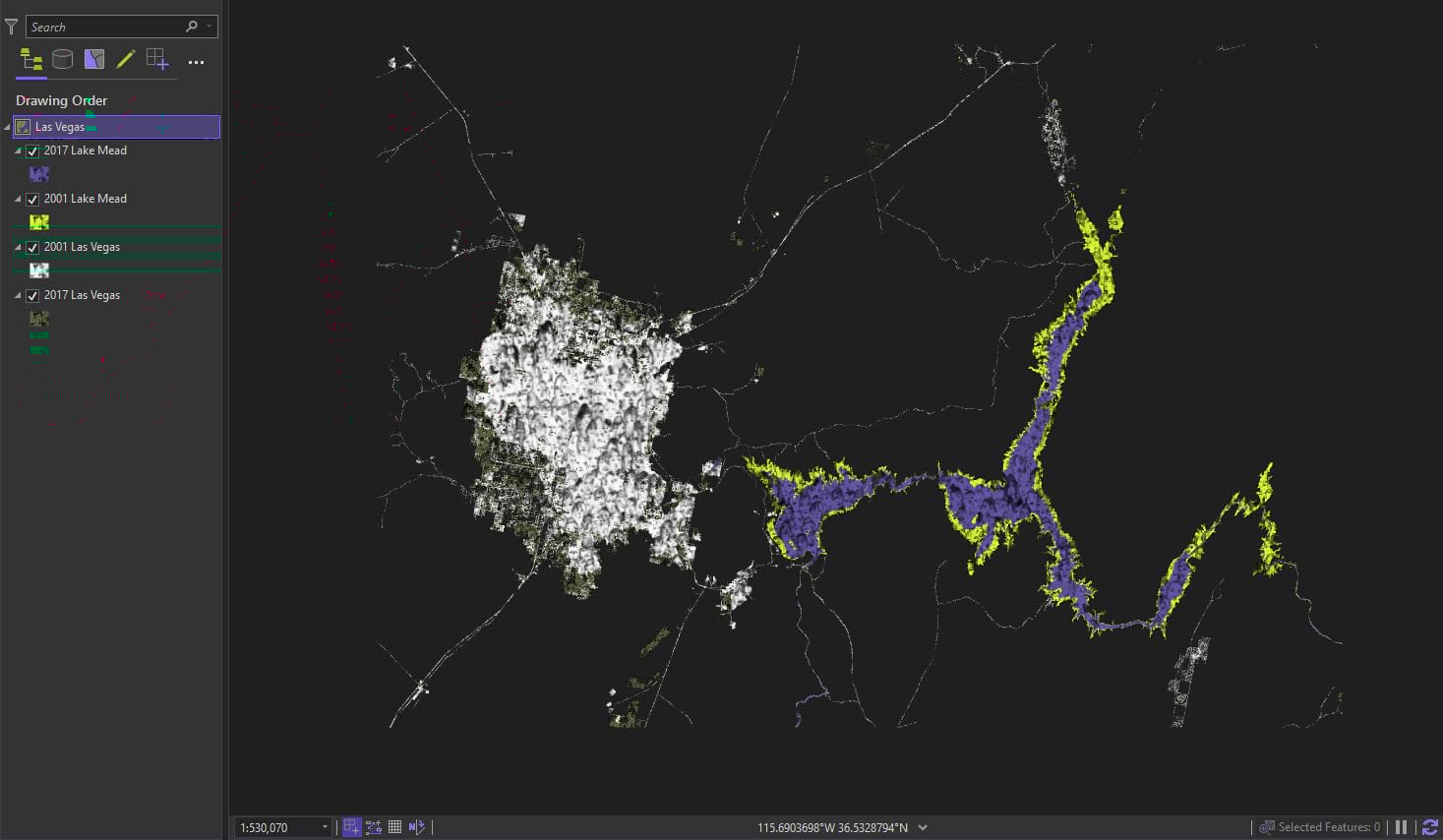 I kept thinking about this blog highlighting a new time series layer available in Living Atlas (displayed this way for the first time ever) the 2001-2016 National Land Cover Database (NLCD). There was a flashing sequence of Lake Mead shrinking with the growth of Las Vegas and vicinity.