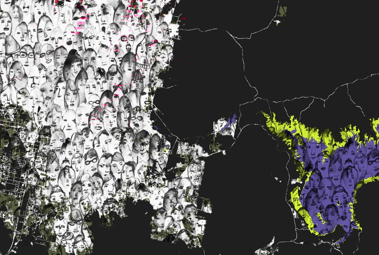 I see crowds of people and the thirst for development representing water loss. How can our analysis and map migrate into a thought-provoking image telling the story of Lake Mead?