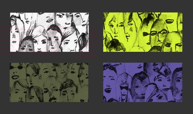 Next, we take the results and visualize them in a way that beckons our viewer to pause and dive deeper…hopefully in the way that a good piece of art can do. We will be using a Picture Fill and a Tint method on a downloaded drawing of a seamless crowd of faces.