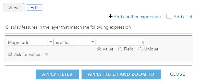 Since earthquakes that are within the range of 4-4.9 magnitude (See The Modified Mercalli Intensity Scale) are detectable by people outdoors and are strong enough to wake some people up at night, this is a good threshold for representation on the map. See this blog about applying filters.